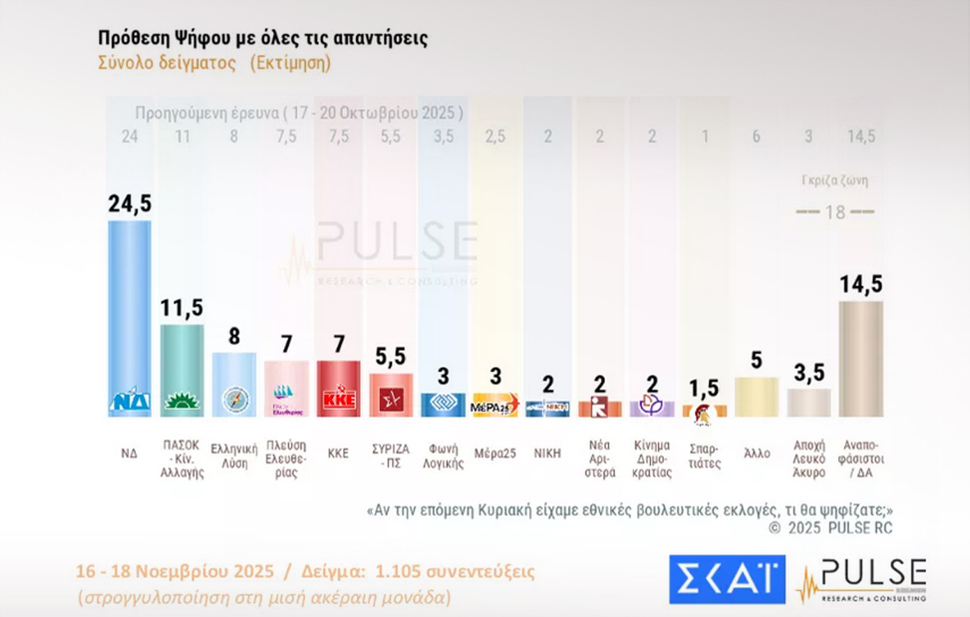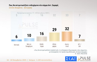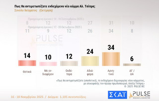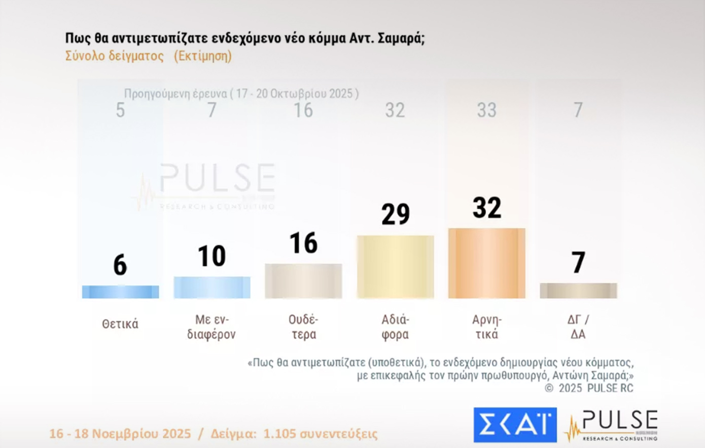Η Pulse πραγματοποίησε νέα δημοσκόπηση για λογαριασμό του ΣΚΑΪ, με τους πολίτες να απαντούν σε μια σειρά από ερωτήματα.