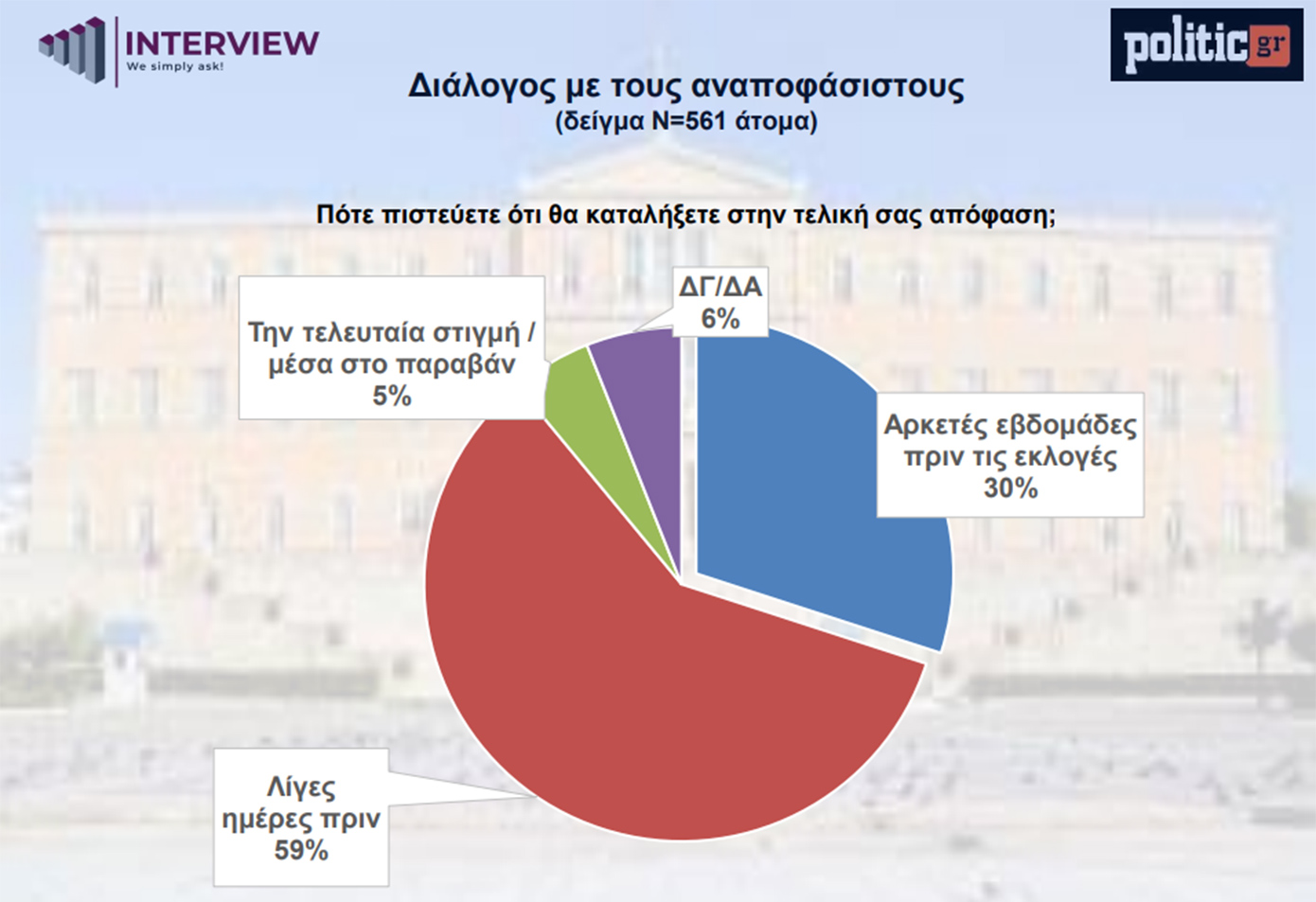 6 στους 10 αναποφάσιστους θα αποφασίσουν μόλις λίγες ημέρες πριν τις εκλογές