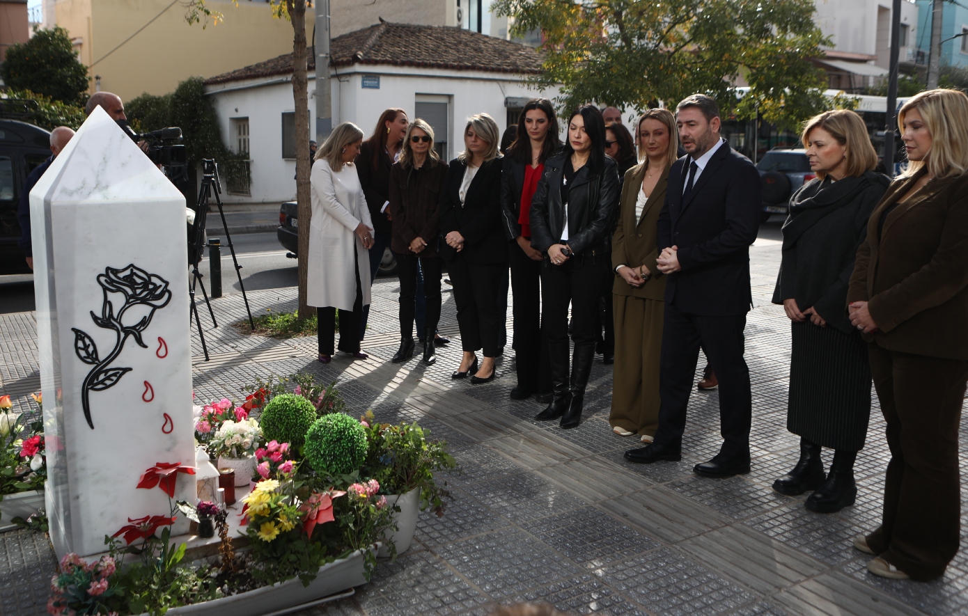 Παγκόσμια Ημέρα Εξάλειψης της Βίας κατά των Γυναικών σήμερα και ο Νίκος Ανδρουλάκης, μαζί με τις γυναίκες βουλευτές και στελέχη του ΠΑΣΟΚ-Κινήματος Αλλαγής, άφησαν λουλούδια στο μνημείο της Κυριακής Γρίβα έξω από το Αστυνομικό Τμήμα Αγίων Αναργύρων, όπου δολοφονήθηκε από τον κακοποιητή της.