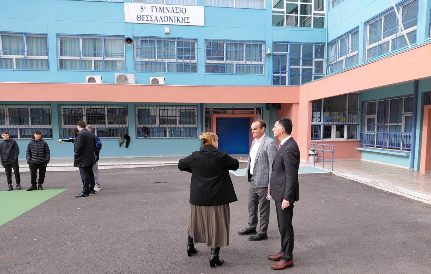 Το 29ο Δημοτικό Σχολείο και το 8ο Γυμνάσιο Θεσσαλονίκης, δύο από τα εκατοντάδες δημόσια σχολεία της χώρας που ανακαινίζονται στο πλαίσιο του προγράμματος «Μαριέττα Γιαννάκου», επισκέφθηκε ο διευθυντής του γραφείου του πρωθυπουργού στη Θεσσαλονίκη, Μιχάλης Μπεκίρης.