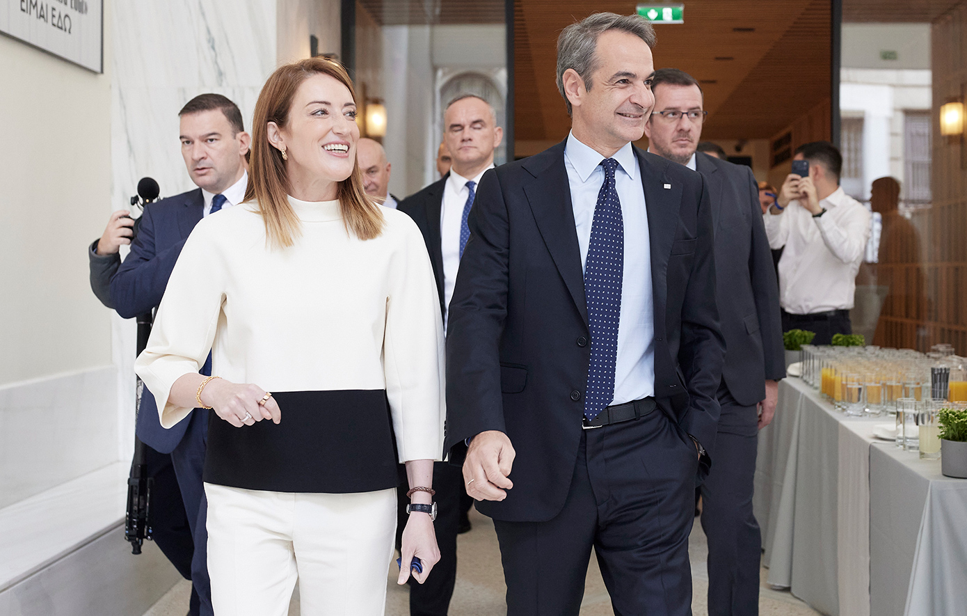 Ο πρωθυπουργός Κυριάκος Μητσοτάκης παρέστη, μαζί με την πρόεδρο του Ευρωπαϊκού Κοινοβουλίου, Ρομπέρτα Μέτσολα, στα εγκαίνια του κέντρου Europa Experience της Αθήνας, στο Αρσάκειο Μέγαρο.