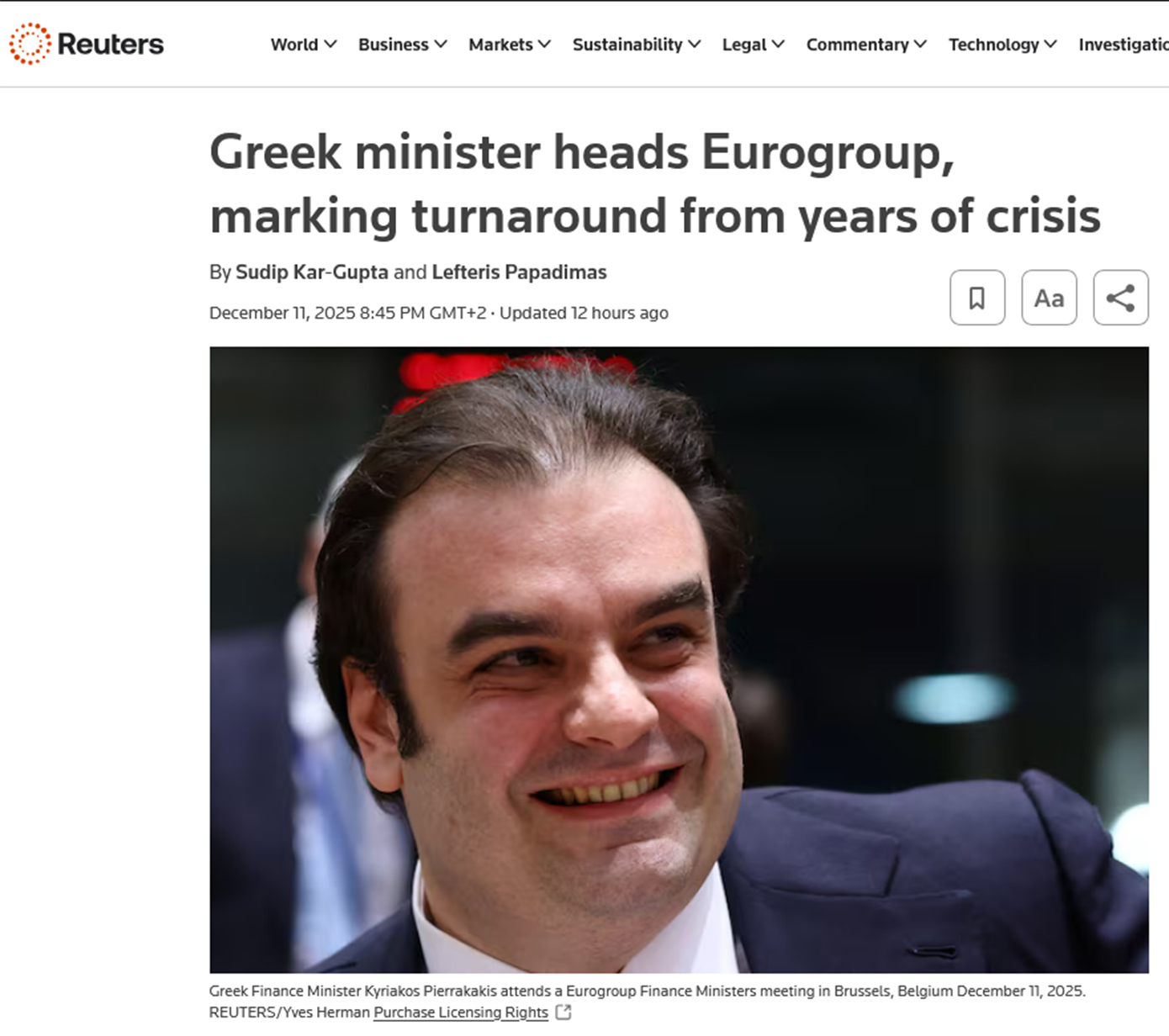 Όπως επισημαίνει συγκεκριμένα το Reuters, η εκλογή του Έλληνα υπουργού δεν αποτελεί απλώς θεσμικό γεγονός, αλλά μια ευρωπαϊκή «στιγμή», με ιδιαίτερο συμβολισμό για τη χώρα και την Ευρωπαϊκή Ένωση συνολικά. Παράλληλα, υπογραμμίζει πως «η χώρα, που πριν από μία δεκαετία δεν αποκλειόταν καν η έξοδός της από την ευρωζώνη, πλέον εκλέγει τον δικό της εκπρόσωπο σε ένα από τα βασικότερα όργανα διαμόρφωσης οικονομικής πολιτικής της Ευρώπης».