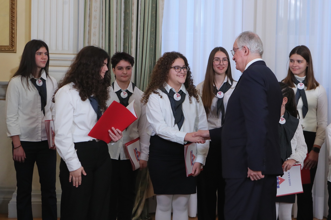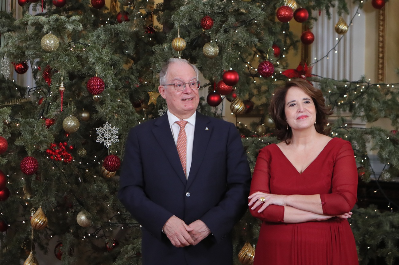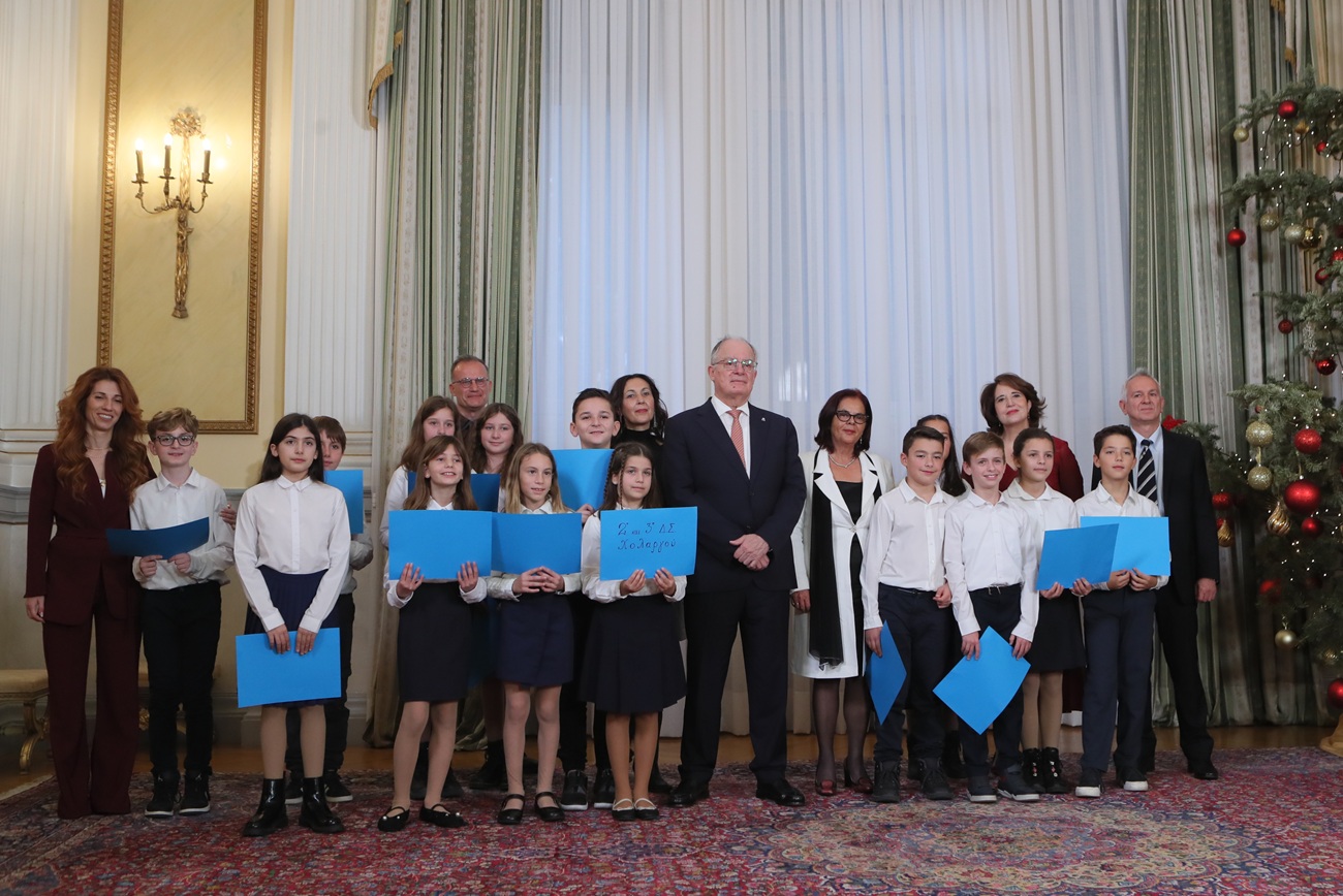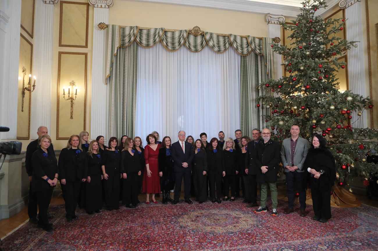 Η μπάντα των Ενόπλων Δυνάμεων και η Προεδρική Φρουρά έψαλαν τα κάλαντα των Χριστουγέννων στον Πρόεδρο της Δημοκρατίας Κωνσταντίνο Αν. Τασούλα και τη σύζυγό του Φανή Σταθοπούλου.