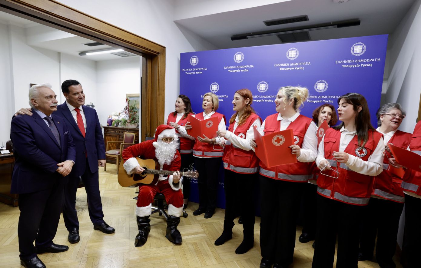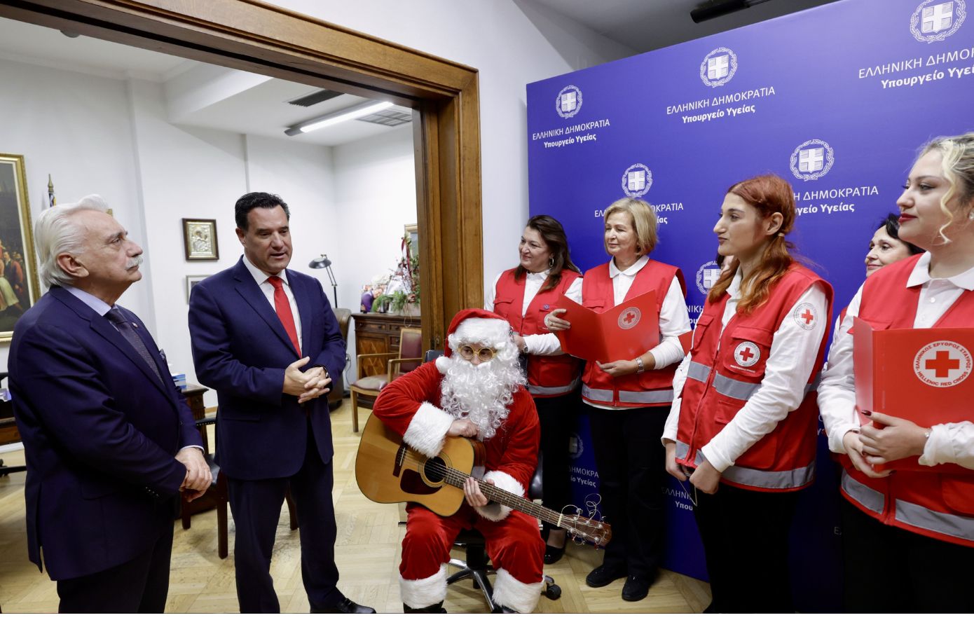 Στο υπουργείο Υγείας βρέθηκαν το πρωί της Τετάρτης 24 Δεκεμβρίου εθελοντές του Ελληνικού Ερυθρού Σταυρού, για να πουν τα κάλαντα των Χριστουγέννων στον υπουργό Υγείας, Άδωνις Γεωργιάδης. Το παρών έδωσε και ο πρόεδρος του Ελληνικού Ερυθρού Σταυρού, Αντώνης Αυγερινός.