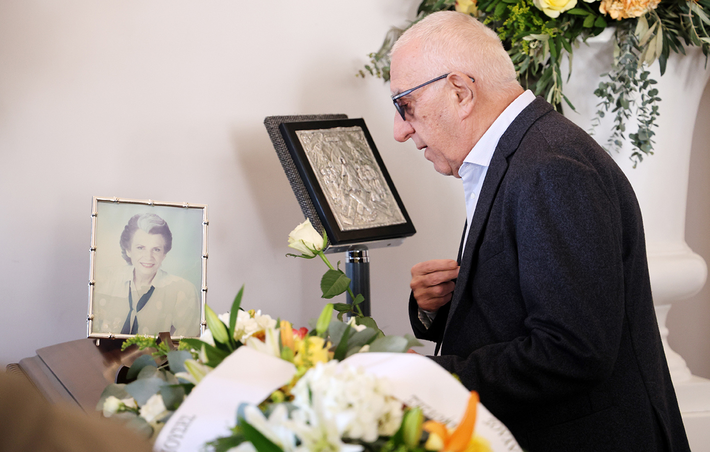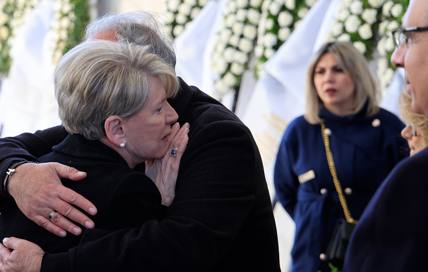 Η Έλενα Ακρίτα έφτασε στο νεκροταφείο μαζί με τον γιο της, Παύλο Αρζόγλου και τον σύζυγό της, Γιώργο Κυρίτση.