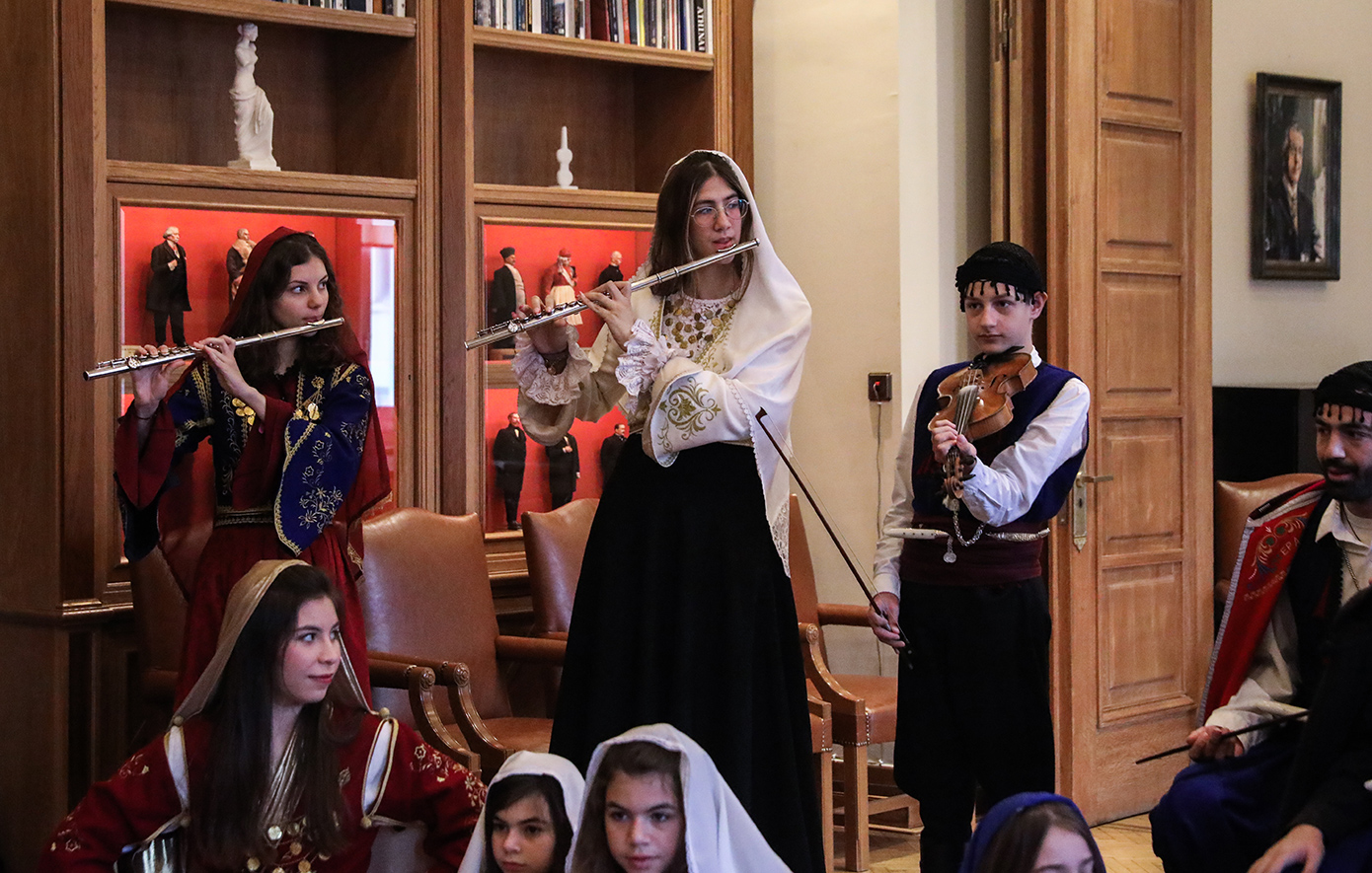 Το δημαρχείο της Αθήνας γέμισε σήμερα με πρωτοχρονιάτικες μελωδίες και παραδοσιακούς χορούς, καθώς από νωρίς το πρωί πρόσκοποι και πολιτιστικοί σύλλογοι από όλη την Ελλάδα έψαλαν τα κάλαντα στον δήμαρχο, Χάρη Δούκα.