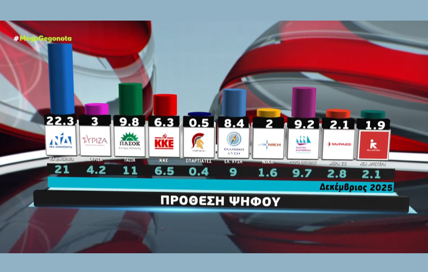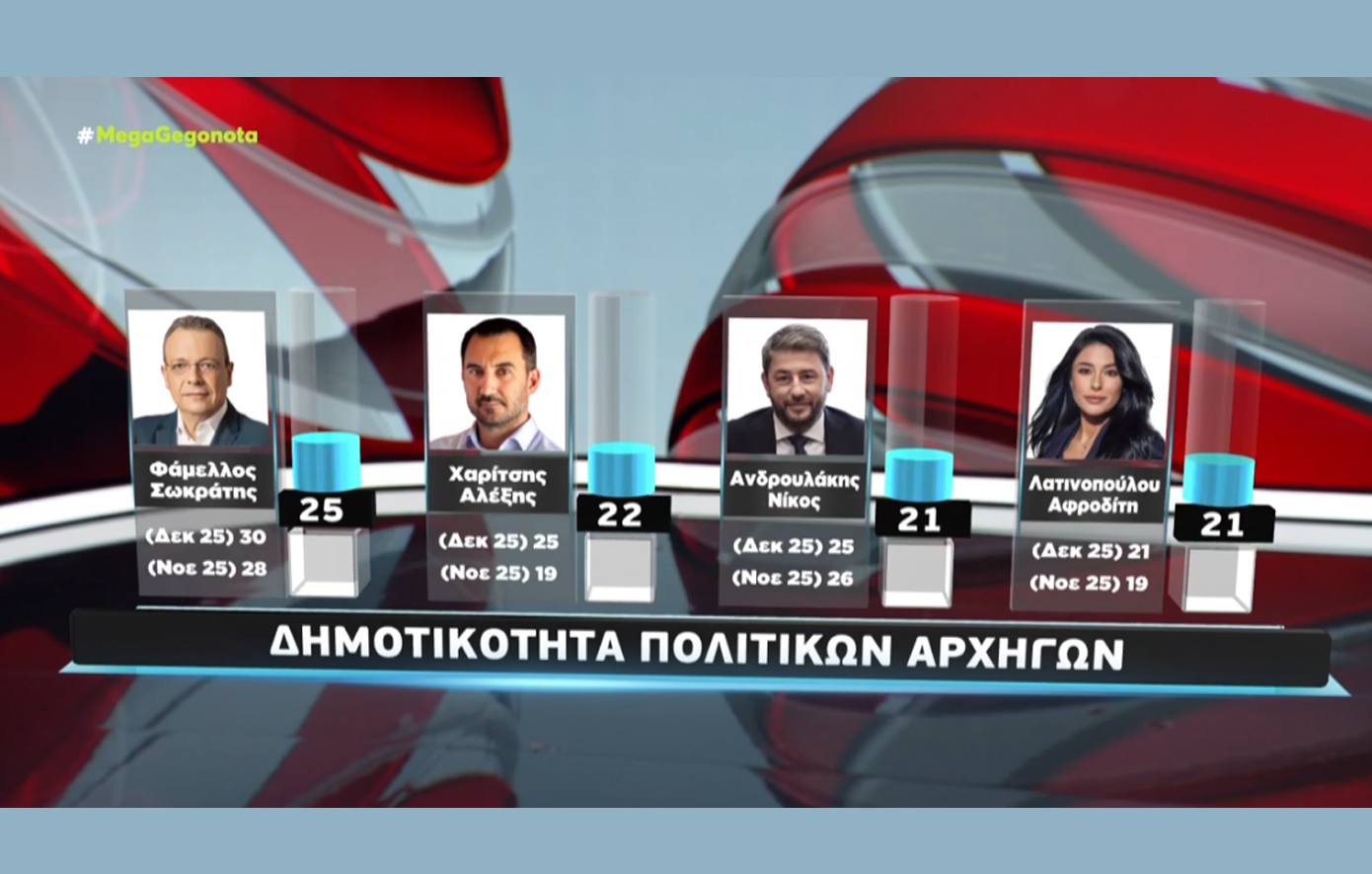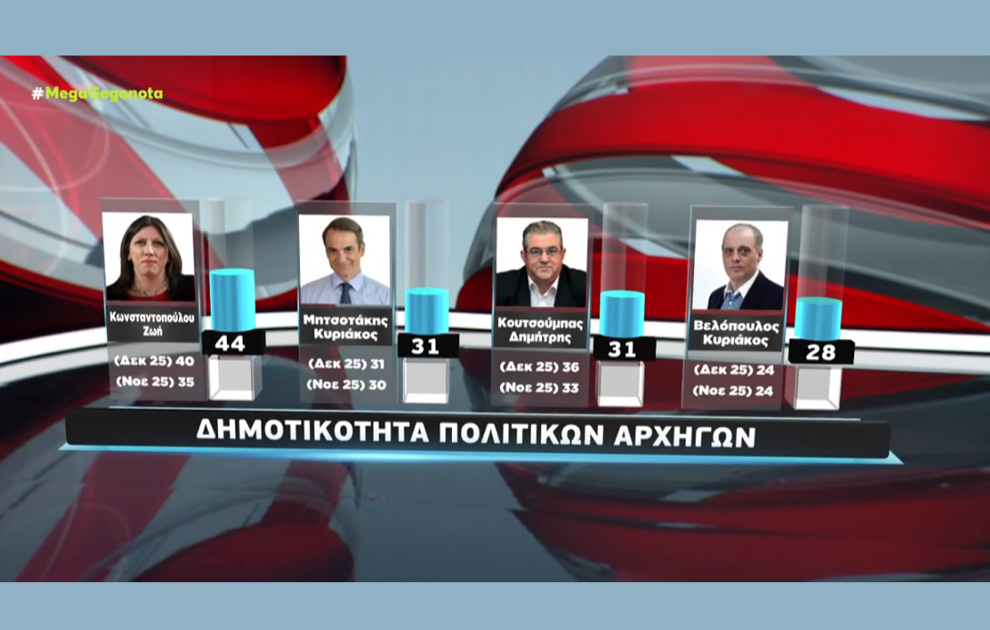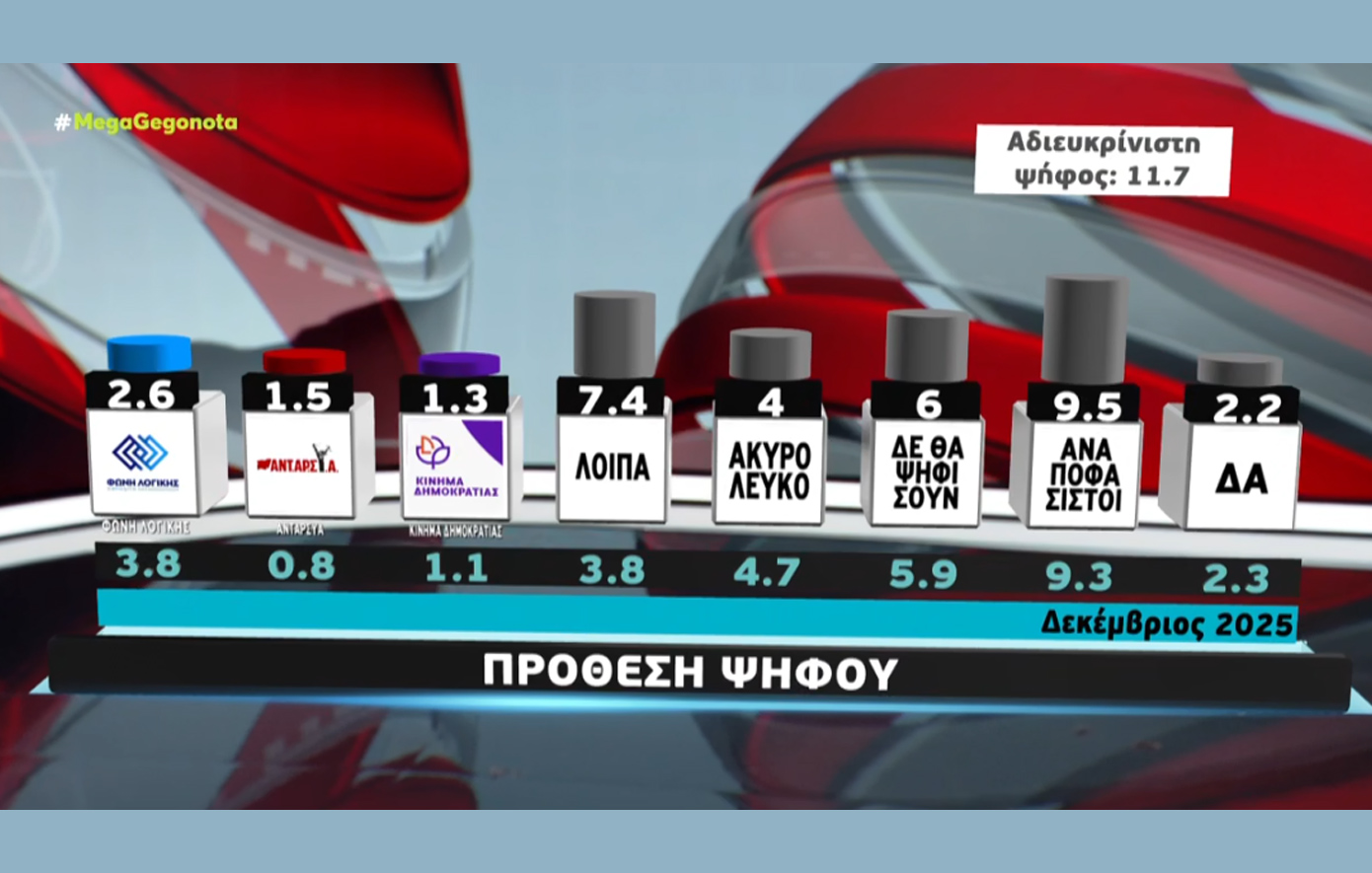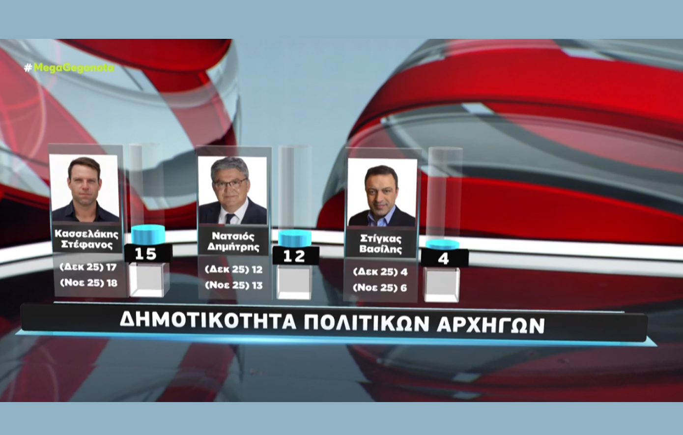 Η Metron Analysis πραγματοποίησε νέα δημοσκόπηση για το Mega, με τους πολίτες να απαντούν σε μια σειρά από ερωτήματα.