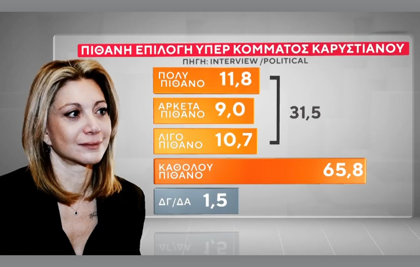 Η δημοσκόπηση της Interview, που αναπαρήγαγε ο ΑΝΤ1, περιείχε ερωτήματα και για τη Μαρία Καρυστιανού, αλλά και για τον Αλέξη Τσίπρα.