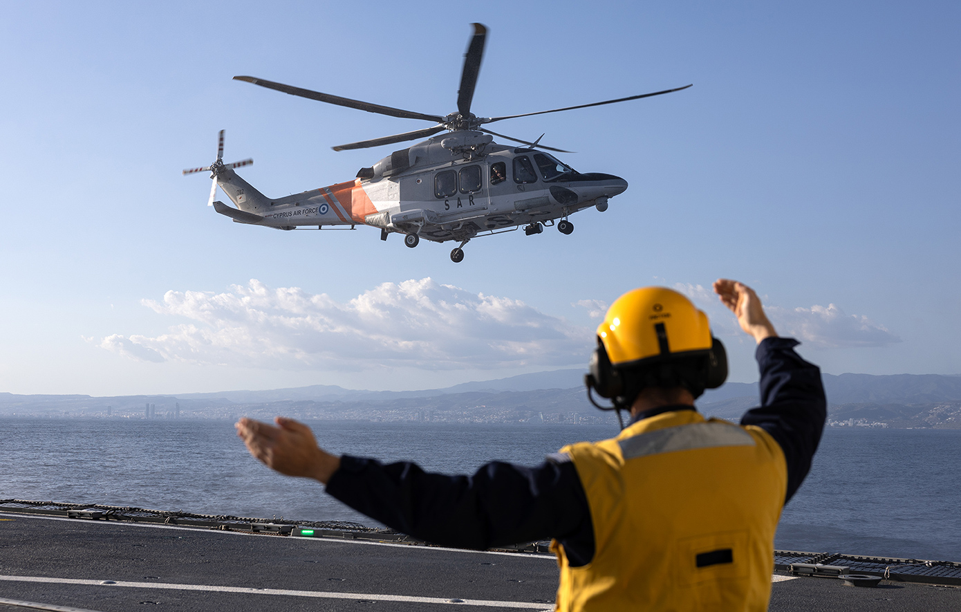 Κατά τη διάρκεια της επίσκεψης, οι δύο ηγέτες ενημερώθηκαν για την εξέλιξη της επιχείρησης και συνομίλησαν με τα μέλη του πληρώματος, επισημαίνοντας την υψηλή ετοιμότητα και την ταχύτατη ανταπόκριση των ελληνικών Ενόπλων Δυνάμεων.