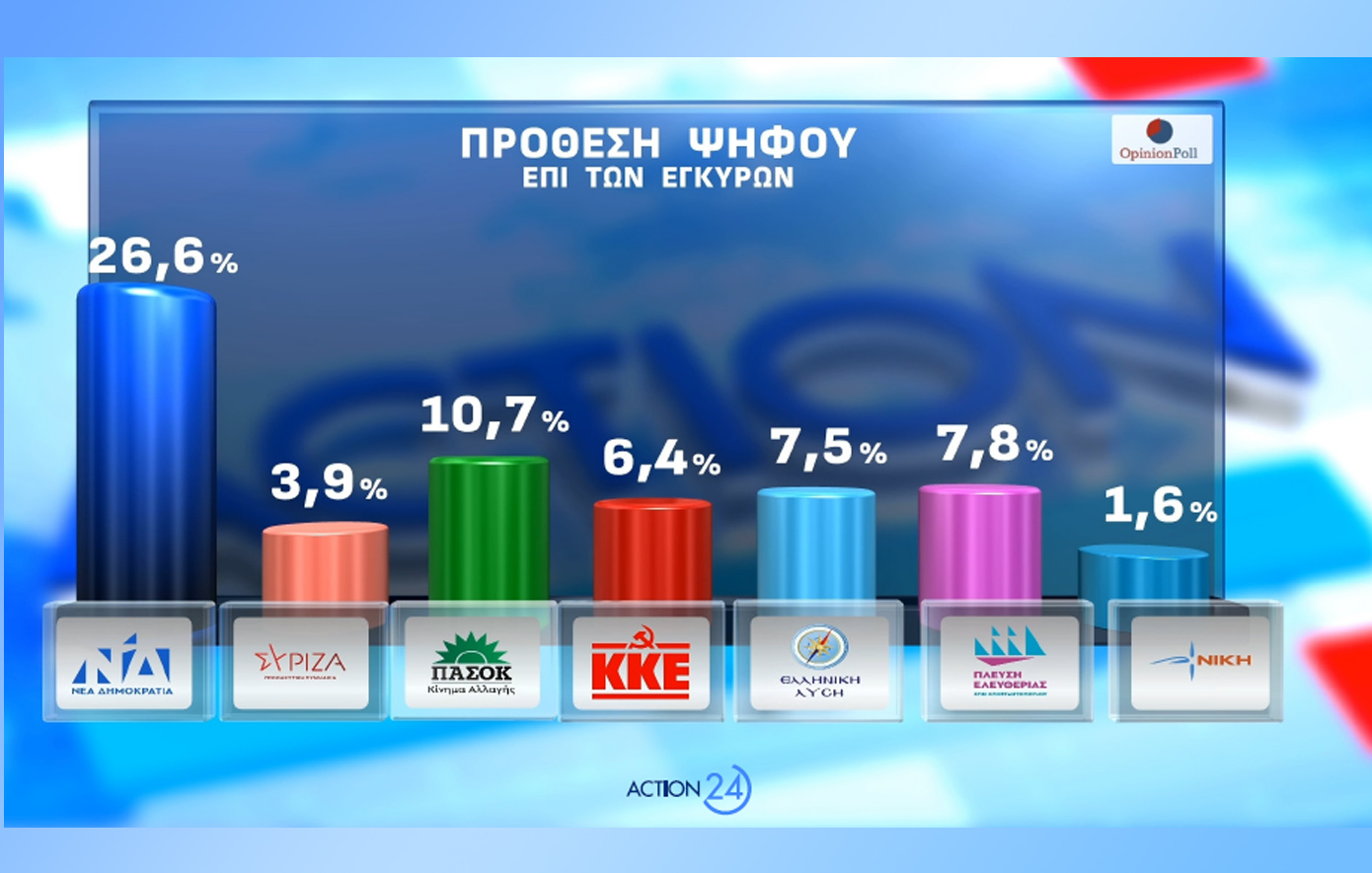 Η Νέα Δημοκρατία και στις δύο δημοσκοπήσεις προηγείται με μεγάλη διαφορά, ενώ το ΠΑΣΟΚ φαίνεται να κλειδώνει τη δεύτερη θέση, έναντι της Πλεύσης Ελευθερίας που μάχεται για την τρίτη.