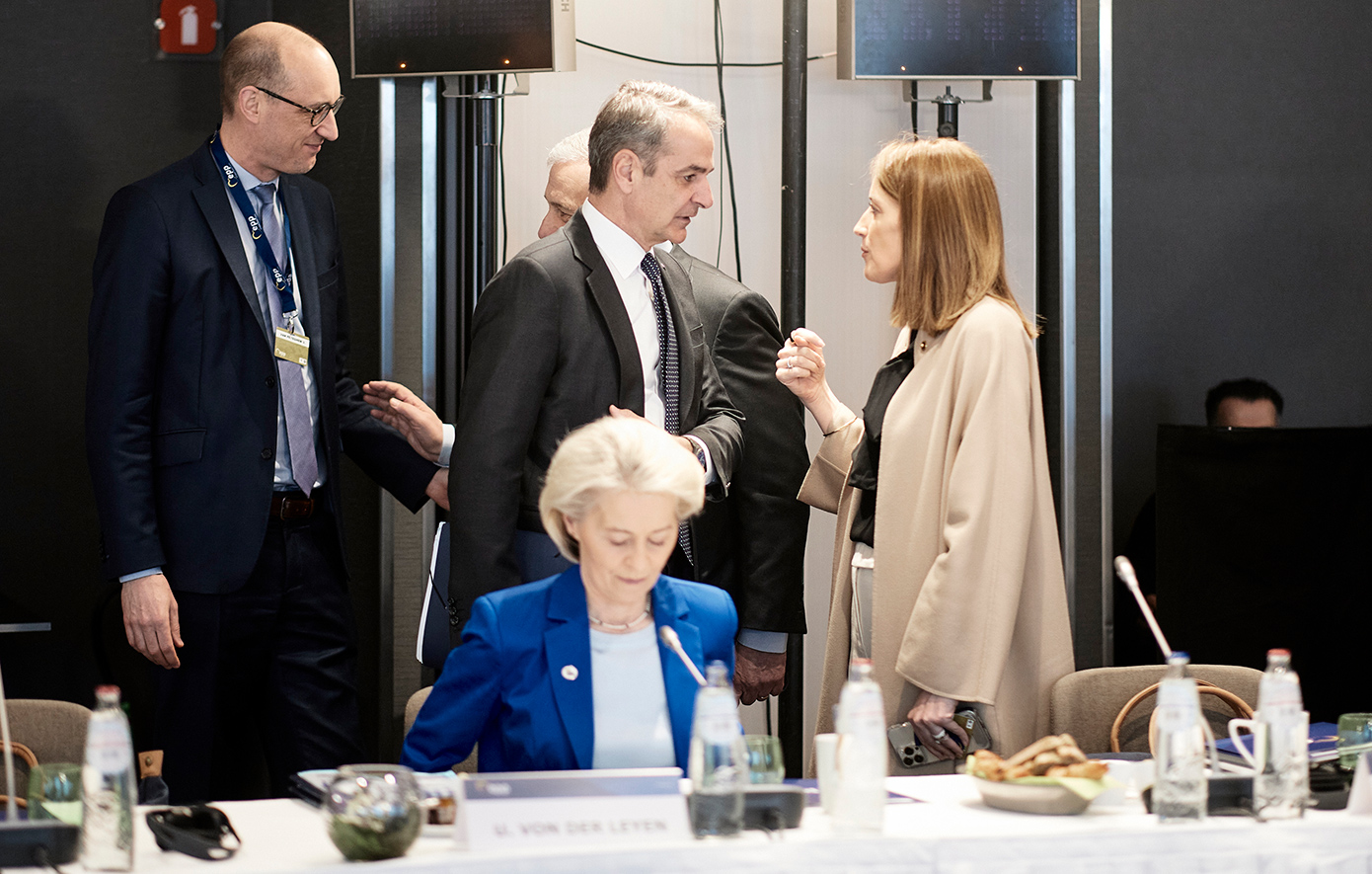 «Η σύνοδος διεξάγεται σε μια κρίσιμη γεωπολιτικά συγκυρία με έναν εκτεταμένο πόλεμο να πλήττει την περιοχή της Μέσης Ανατολής. Οι επιπτώσεις προφανώς στην παγκόσμια οικονομία είναι εξαιρετικά σοβαρές», τόνισε ο πρωθυπουργός, Κυριάκος Μητσοτάκης, από τις Βρυξέλλες, όπου οι «27» Ευρωπαίοι ηγέτες συμμετέχουν στη Σύνοδο Κορυφής εν μέσω πολεμικής σύρραξης στη Μέση Ανατολή.