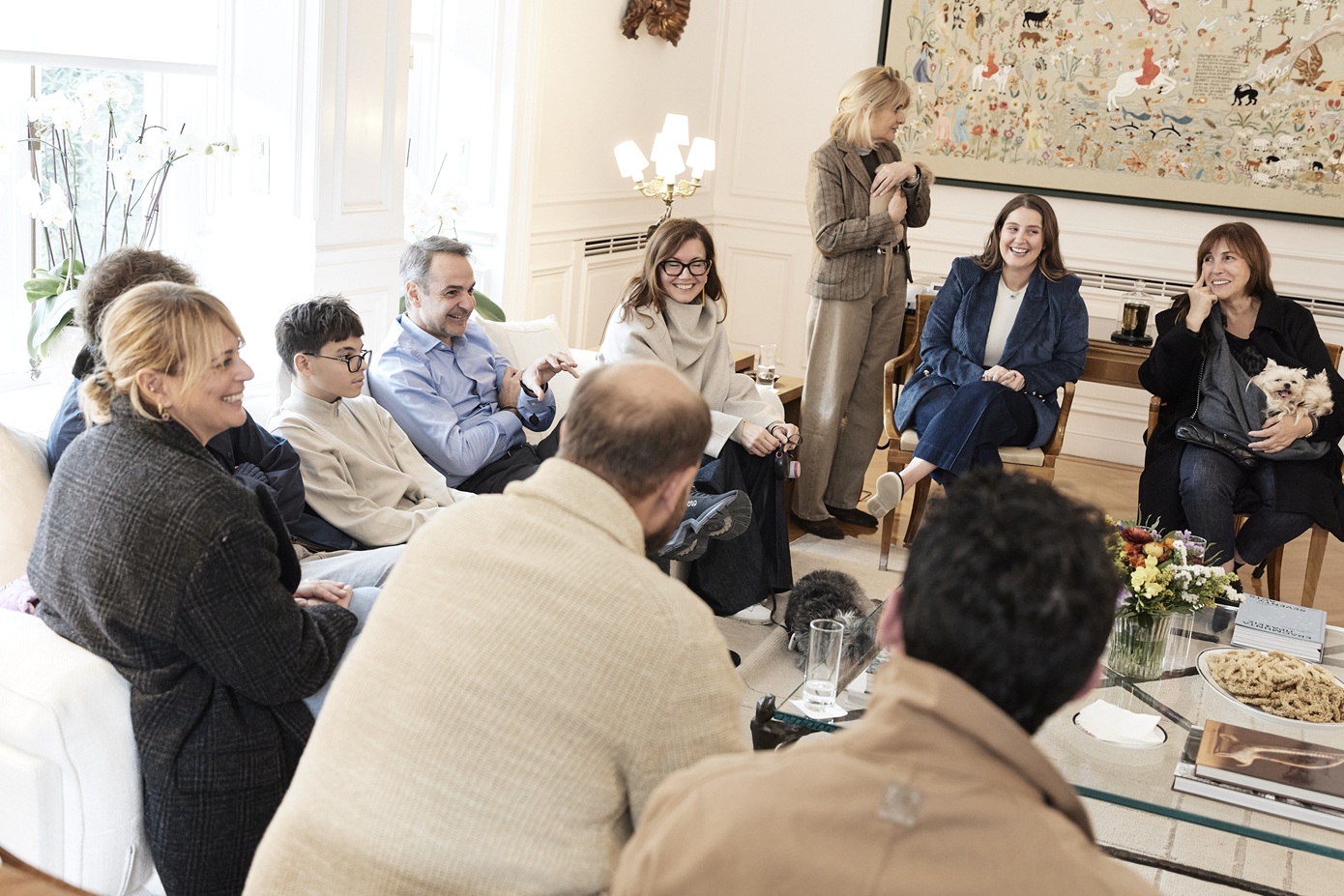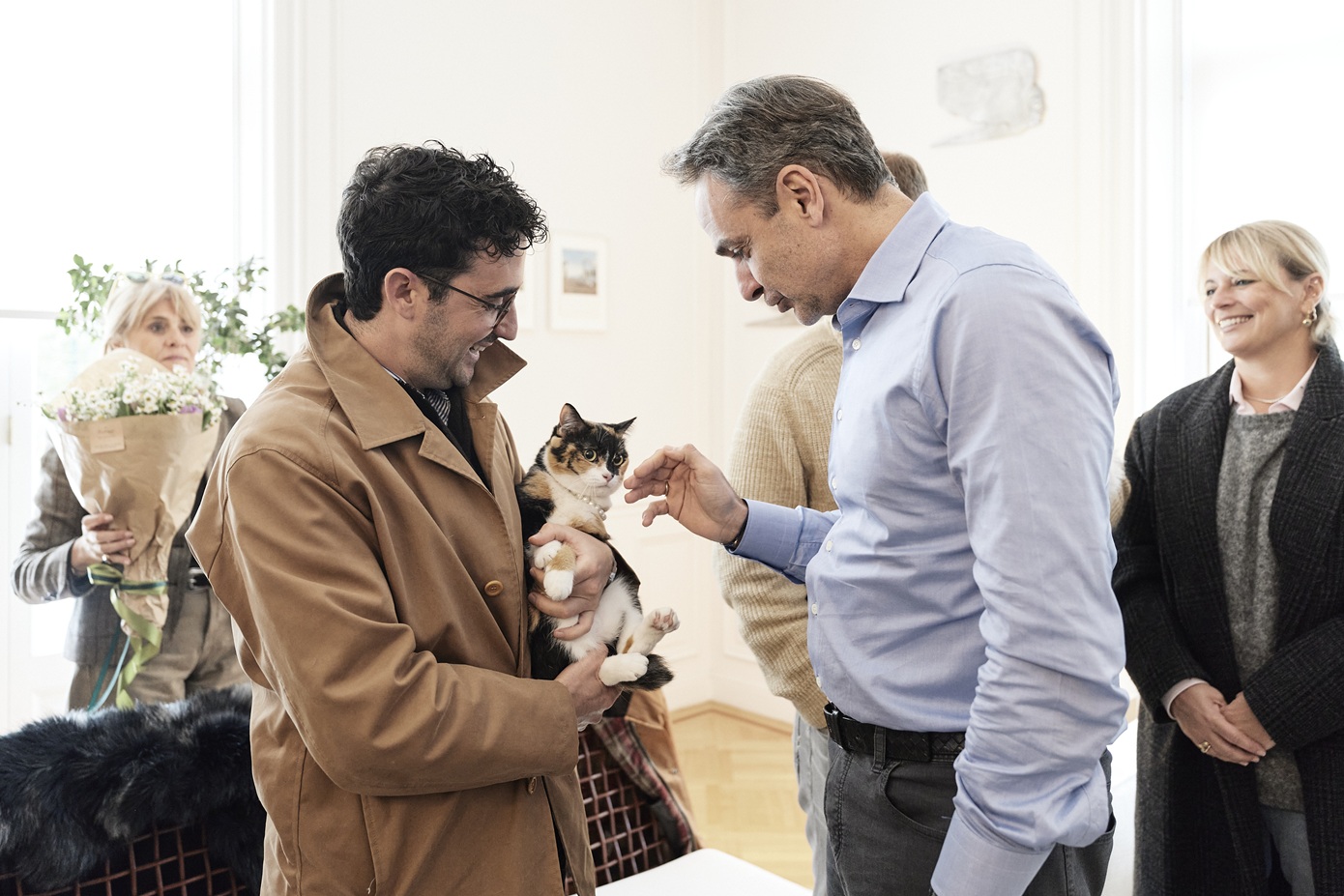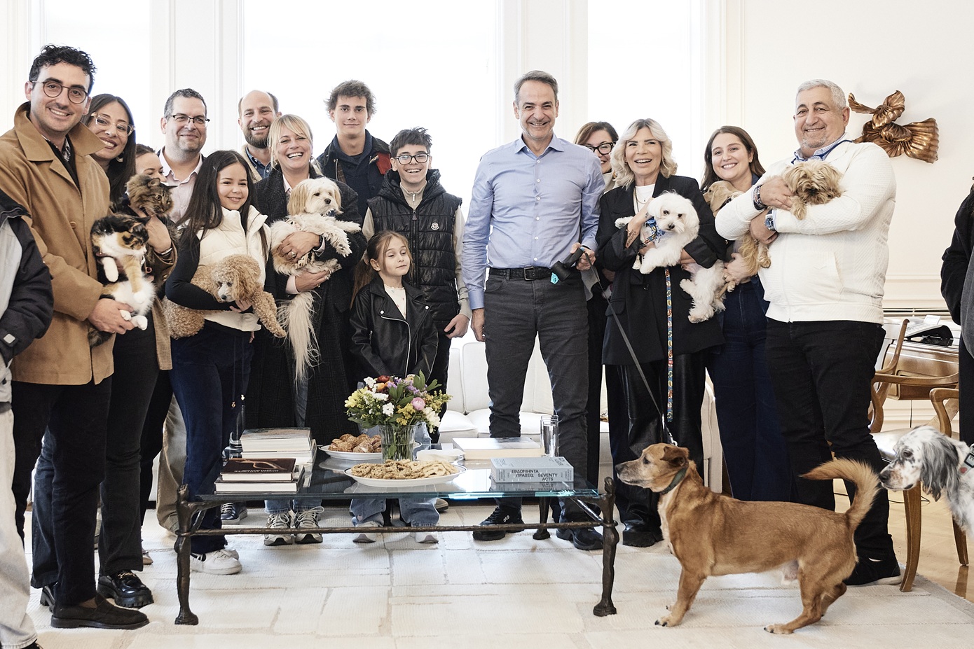 Έλληνες πολίτες που επαναπατρίστηκαν από τη Μέση Ανατολή μαζί με τα ζώα συντροφιάς τους, μέσω της ειδικής πτήσης που οργάνωσε το υπουργείο Εξωτερικών σε συνεργασία με την Aegean, υποδέχτηκε σήμερα ο Κυριάκος Μητσοτάκης στο Μέγαρο Μαξίμου.
