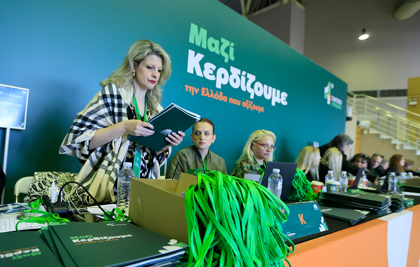Από νωρίς το απόγευμα, εκατοντάδες στελέχη και μέλη του κόμματος κατέφτασαν στο κλειστό Ολυμπιακό, λαμβάνοντας τις θέσεις τους ενόψει της κρίσιμης τριήμερης πολιτικής διαδικασίας.