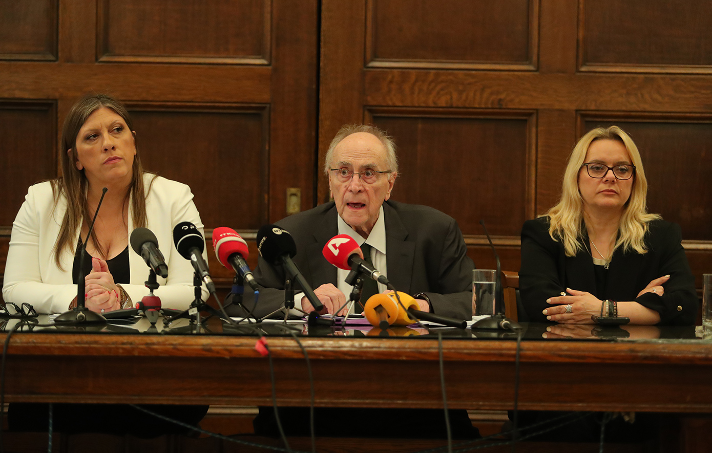 «Θα μηνύσω τον πρόεδρο της Ένωσης Δικαστών και Εισαγγελέων, θα ζητήσω την πειθαρχική παραπομπή του και θα απευθυνθώ στα διεθνή παρατηρητήρια» είπε ο Νίκος Κωνσταντόπουλος σε συνέντευξη Τύπου που έδωσαν ως συνήγοροι θυμάτων των Τεμπών με τη Ζωή Κωνσταντοπούλου, στην αίθουσα του ΔΣΑ.
