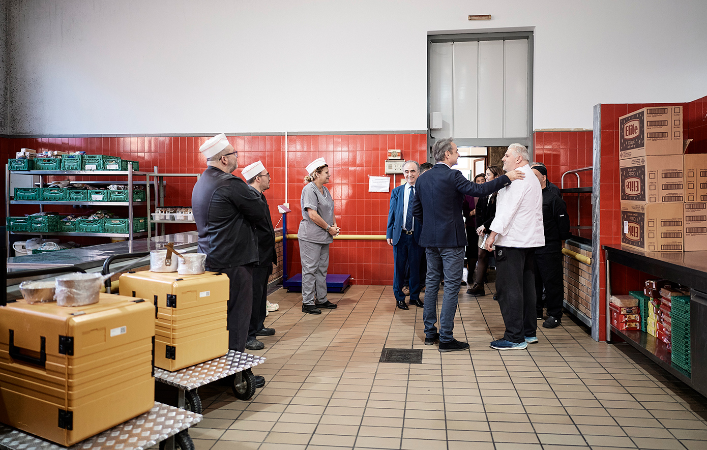Ο πρωθυπουργός, συνοδευόμενος από την υπουργό Κοινωνικής Συνοχής και Οικογένειας Δόμνα Μιχαηλίδου, ενημερώθηκε από τον Πρόεδρο του Γηροκομείου Σπύρο Χαμακιώτη για το έργο της διοίκησης, η οποία σε συνεργασία με την κυβέρνηση κινείται ήδη στην κατεύθυνση εξυγίανσης των οικονομικών του ιδρύματος και ανακαίνισης των εγκαταστάσεών του, προκειμένου αφενός να βελτιωθούν ακόμη περισσότερο οι συνθήκες φιλοξενίας και αφετέρου να αυξηθεί ο αριθμός των ηλικιωμένων που φροντίζει, και είχε την ευκαιρία να επισκεφθεί τα ανακαινισμένα μαγειρεία.