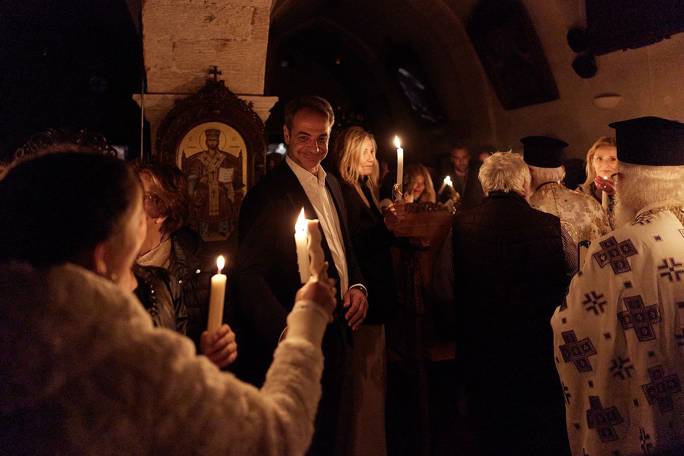 Ο Πρωθυπουργός βρέθηκε ανάμεσα σε πλήθος πιστών, συνοδευόμενος από τη σύζυγό του, Μαρέβα και αντάλλαξε ευχές με δεκάδες πολίτες που βρέθηκαν στη Μονή.