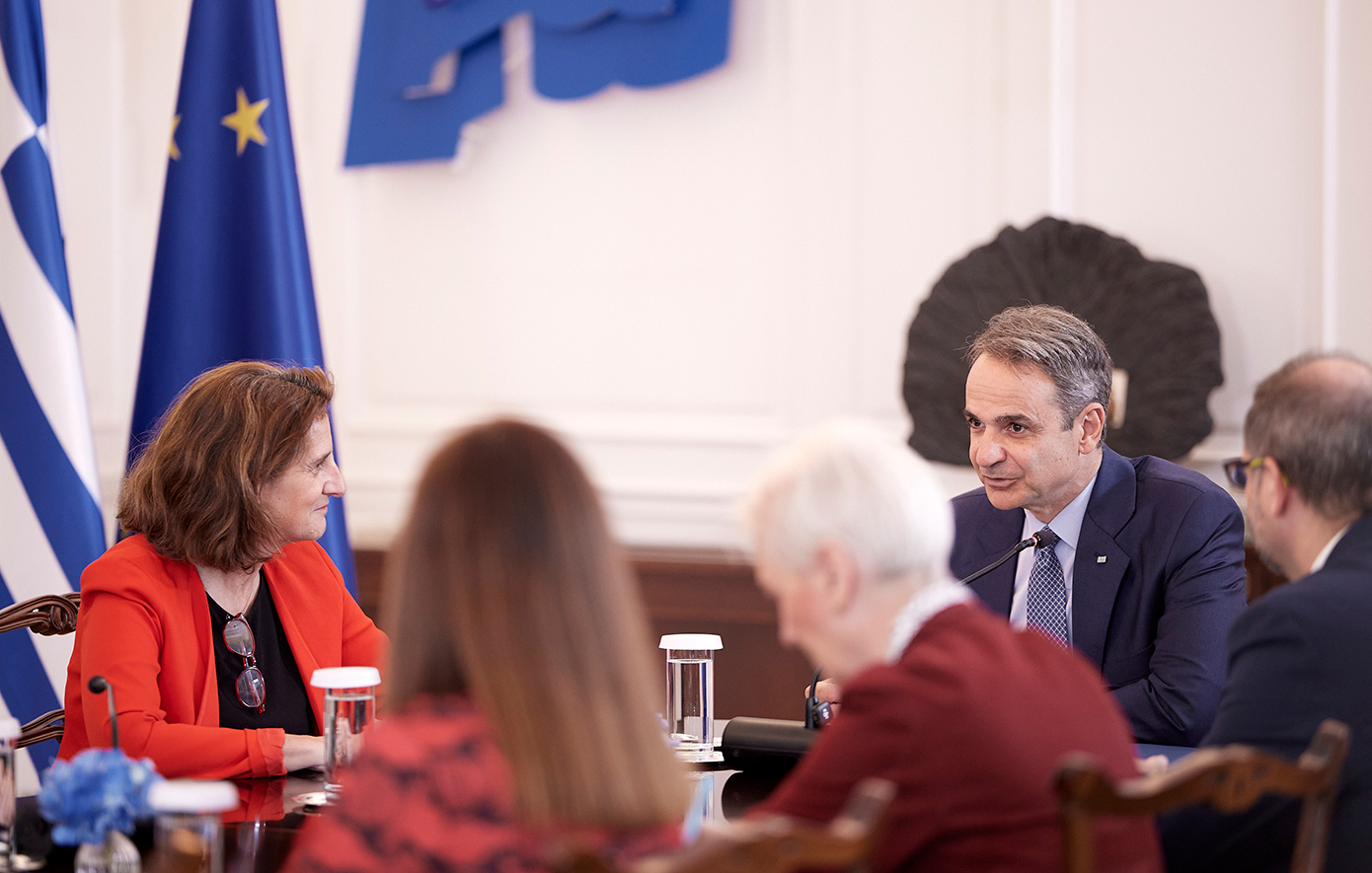 Ο πρωθυπουργός Κυριάκος Μητσοτάκης συναντήθηκε το πρωί στο Μέγαρο Μαξίμου με την εκτελεστική αντιπρόεδρο της Ευρωπαϊκής Επιτροπής, αρμόδια για την Καθαρή, Δίκαιη και Ανταγωνιστική Μετάβαση, Teresa Ribera.