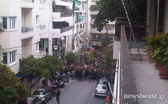 Αυτήν την ώρα ομάδα περίπου 200 ατόμων, με επικεφαλής το σκηνοθέτη Δημήτρη Κολλάτο έχει συγκεντρωθεί έξω από το σπίτι του Κ. Σημίτη φωνάζοντας συνθήματα κατά του πρώην πρωθυπουργού.