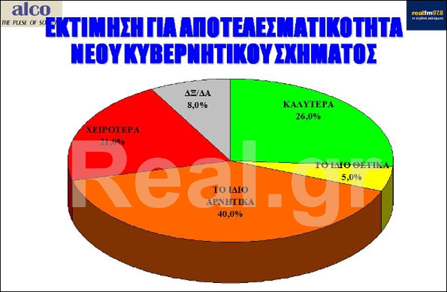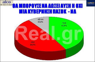 Υπέρ των πρόωρων εκλογών τάσσονται για πρώτη φορά οι πολίτες. Σύμφωνα με δημοσκόπηση της ALCO που διενεργήθηκε για λογαριασμό του real.gr ,οι πολίτες εκτιμούν σε ποσοστό 43% ότι ο πρωθυπουργός δεν έπρεπε να προχωρήσει σε ανασχηματισμό, αλλά να οδηγήσει τη χώρα σε πρόωρες εκλογές.