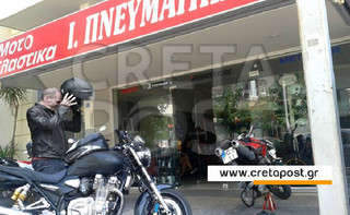 Επίσκεψη στην Κρήτη πραγματοποιεί ο πρώην υπουργός Οικονομικών, Γιάννης Βαρουφάκης. Ο κ. Βαρουφάκης, έφτασε το πρωί της Τρίτης με πλοίο της γραμμής στο Ηράκλειο, έχοντας μαζί του τη μηχανή του. Ωστόσο, φαίνεται πως όταν βγήκε από το πλοίο έπαθε λάστιχο και χρειάστηκε να πάει σε κατάστημα ελαστικών για να το αλλάξει. Αυτό τουλάχιστον καταγράφει ο φωτογραφικός φακός ενός πολίτη του Ηρακλείου ο οποίος έστειλε φωτογραφίες στο cretapost.gr, ενώ τις δημοσίευσε και σε μέσο κοινωνικής δικτύωσης. Μάλιστα δεν έλειψε να γράψει και το σχόλιο: «Μυστική επίσκεψη του Γιάνη (με ένα Ν) στην Κρήτη… τον έπιασε πισινό λάστιχο με το που έφτασε στο Ηράκλειο. Αν και το λάστιχο επισκευάστηκε επιμελώς… για καλό και για κακό….. αντικατέστησε και το μπροστινό».