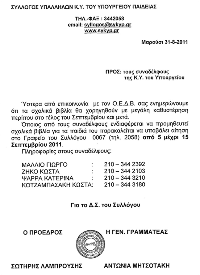 Ακόμα και υπάλληλοι του υπουργείου Παιδείας καταφεύγουν σε ανακοινώσεις, όπως η επισυναπτόμενη».