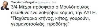 Την δική του απάντηση στον Βασίλη Μουλόπουλο δίνει ο Θεόδωρος Πάγκαλος με αναρτήσεις μέσα από τον προσωπικό του λογαριασμό στο twitter.