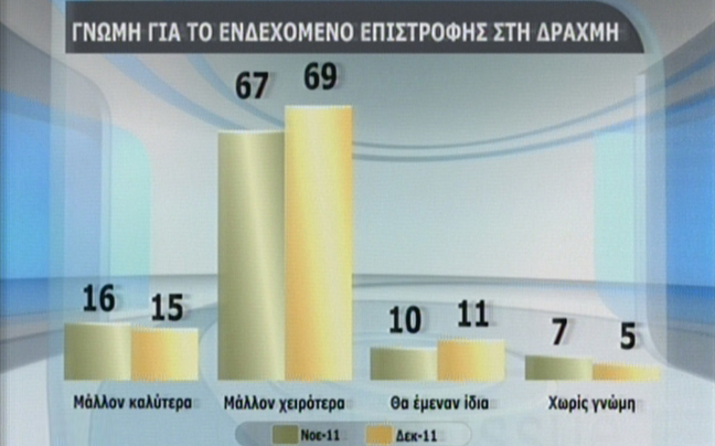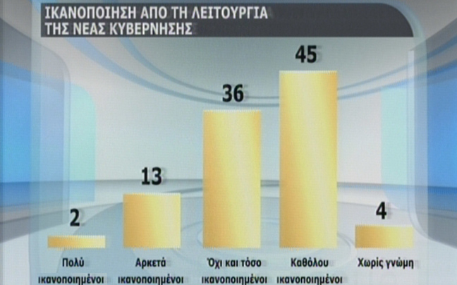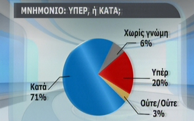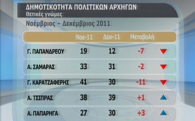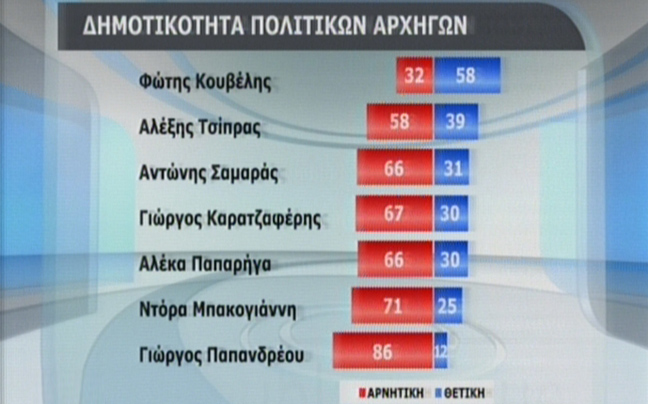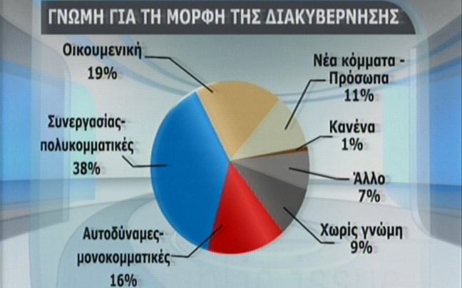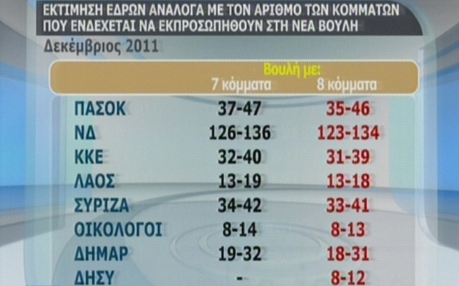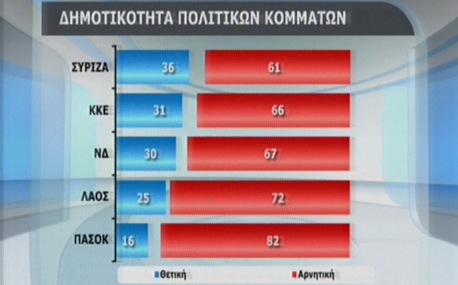 Συγκεκριμένα η Νέα Δημοκρατία λαμβάνει 30%, το ΠΑΣΟΚ 15,5%,ο ΣΥΡΙΖΑ 14%, το ΚΚΕ 13,5%, η Δημοκρατική Αριστερά 9,5%, ο ΛΑΟΣ 6%, οι Οικολόγοι 4% και η Δημοκρατική Συμμαχία 3%. Τα αποτελέσματα έχουν υπολογιστεί με αναγωγή αλλά και με μία αποχή της τάξεως του 32,5%.