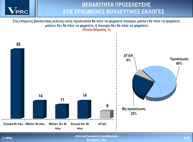 Τέλος, το 25% δηλώνει πως μάλλον ή σίγουρα θα απέχει από τις κάλπες στις επόμενες εκλογές.