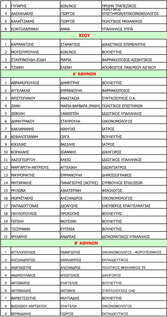 Η Ανανέωση είναι εμφανής: οι μισοί περίπου είναι νέα πρόσωπα. Ενώ δόθηκε μεγάλη έμφαση στους προερχόμενους από τη νεολαία, αλλά και σε νέους επιστήμονες.