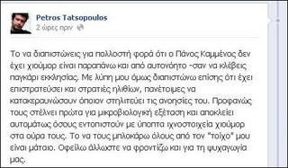 Η κόντρα συνεχίστηκε καθώς ο κ. Τατσόπουλος απάντησε μέσα facebook στο tweet του Πάνου Καμμένου λέγοντας: