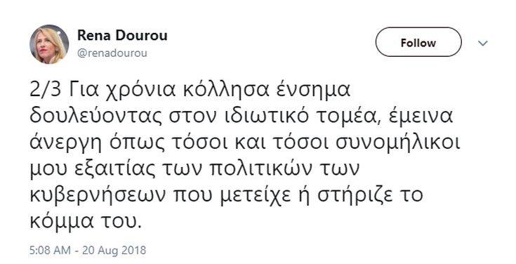 Για χρόνια κόλλησα ένσημα δουλεύοντας στον ιδιωτικό τομέα, έμεινα άνεργη όπως τόσοι και τόσοι συνομήλικοι μου εξαιτίας των πολιτικών των κυβερνήσεων που μετείχε ή στήριζε το κόμμα του.