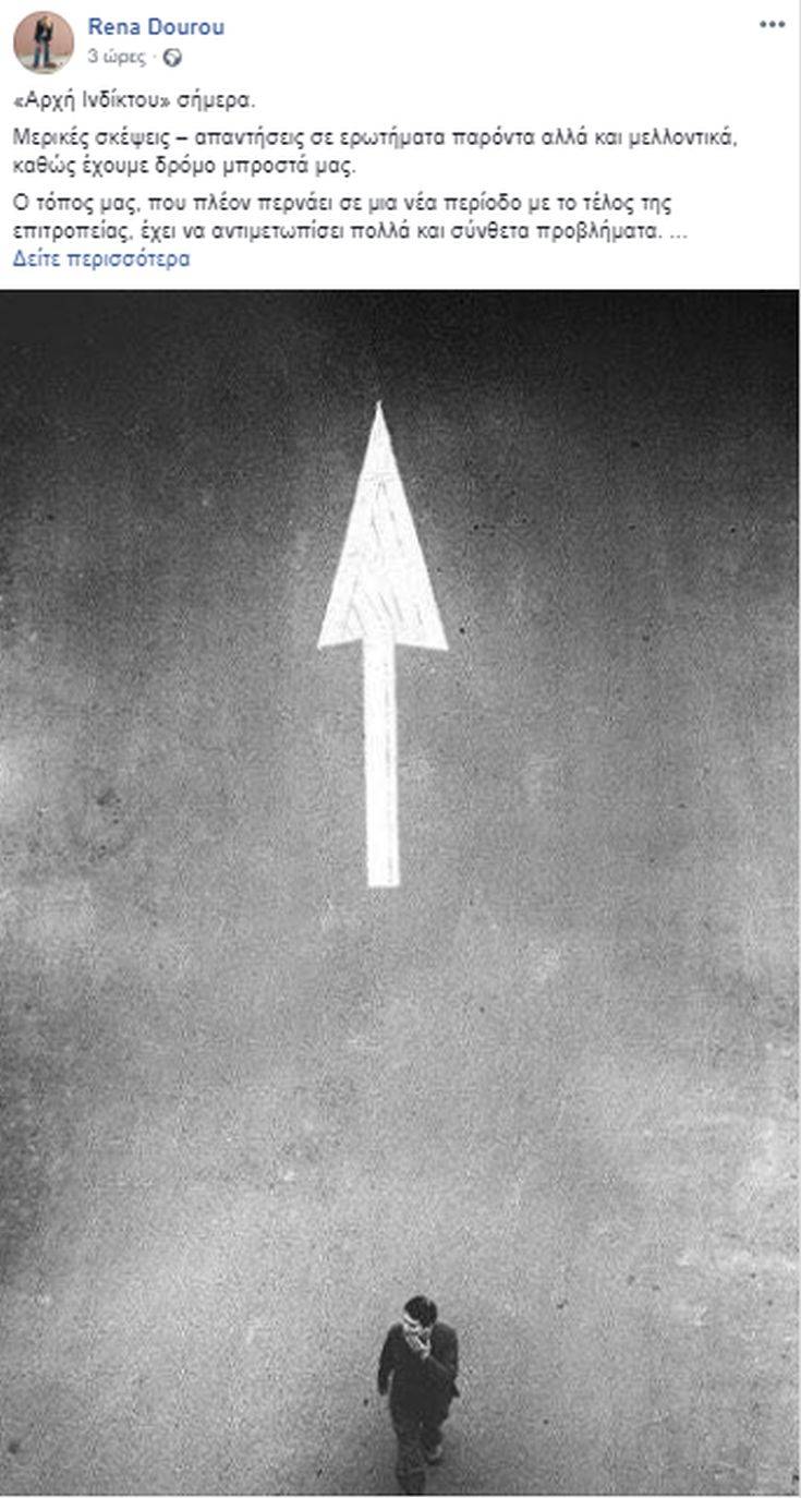 Με μια πολιτική ανάρτηση στον προσωπικό της λογαριασμό στο Facebook, όπου κάνει αναφορές σε «διχαστικά διλήμματα» και «διχαστικές λογικές εθνικής ήττας», που «οδήγησαν σε καταστροφές» τη χώρα, η Ρένα Δούρου. εύχεται «καλό μήνα», με αφορμή και τη σημερινή «Πρωτοχρονιά» (Αρχή Ινδίκτου). «Όταν ο Βενιζέλος έγινε “Βελζεβούλης”, δεν ηττήθηκε ο ίδιος αλλά η πατρίδα», γράφει στο ποστ της η περιφερειάρχης Αττικής και μέλος του Πολιτικού Συμβουλίου του ΣΥΡΙΖΑ.