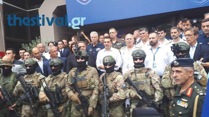 Σε εξέλιξη είναι η βόλτα που πραγματοποιεί ο πρωθυπουργός, Αλέξης Τσίπρας, στα περίπτερα της 83ης Διεθνούς Εκθέσεως Θεσσαλονίκης. Του ανταποκριτή μας από το thestival.gr στη Θεσσαλονίκη Ο κ. Τσίπρας ξεκίνησε τη βόλτα του από το περίπτερο του ΑΠΕ-ΜΠΕ όπου έκανε μία σύντομη δήλωση και στη συνέχεια ξεναγήθηκε στο Περίπτερο των Ενόπλων Δυνάμεων όπου τον υποδέχτηκε ο Υπουργός Εθνικής Άμυνας, Πάνος Καμμένος. Αμέσως μετά τη ξενάγηση, παρακολούθησε επίδειξη αναρρίχησης-καταρρίχησης από στελέχη της 71ης Αερομεταφερόμενης Ταξιαρχίας. Ο κ. Τσίπρας έβγαλε και μία αναμνηστική φωτογραφία με καταδρομείς. Στη συνέχεια ο πρωθυπουργός, κατευθύνθηκε στο Περίπτερο 15 στο οποίο φιλοξενούνται φορείς του δημοσίου, μεταξύ άλλων ο ΟΣΕ, το Υπουργείο Εσωτερικών, η ΕΥΑΘ και το ΑΠΘ. Ο πρωθυπουργός, έπαιξε και μπάσκετ με δύο μικρούς αθλητές στο γήπεδο που έχει στηθεί έξω από το περίπτερο 15. Ο Αλ. Τσίπρας έριξε δύο βολές και πέτυχε τη μία… Έξω από το Περίπτερο των Ενόπλων Δυνάμεων, περίμενε το πρωθυπουργό η μπάντα του Γ’ Σώματος Στρατού η οποία του έπαιξε το γνωστό τραγούδι των Queen, «We will rock you».