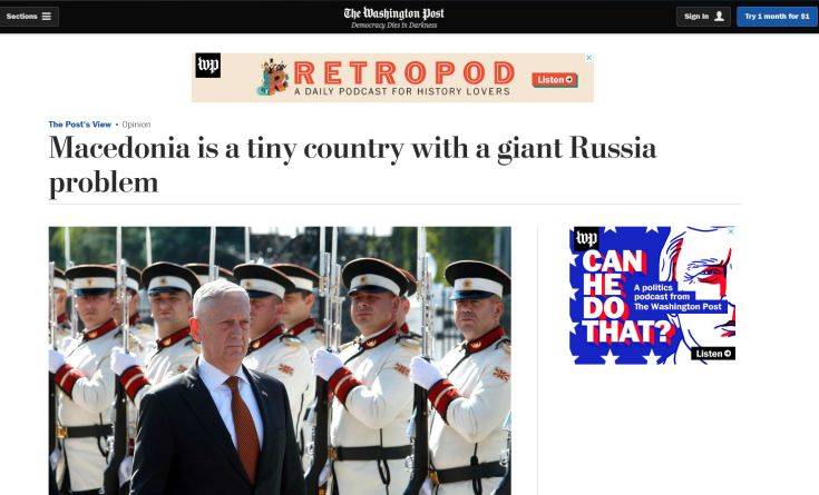 Washington Post: Η «Μακεδονία» είναι μία μικρή χώρα με ένα τεράστιο ρωσικό πρόβλημα