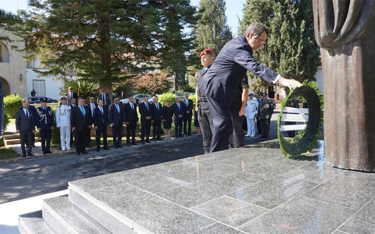 Ο Κύπριος πρόεδρος, Νίκος Αναστασιάδης επισήμανε ότι «σήμερα είναι μέρα προβληματισμού για Ελληνοκυπρίους και Τουρκοκυπρίους. Για να υπάρχει, βεβαίως, προοπτική και μέλλον, χρειάζεται η κυπριακή επικράτεια να είναι για όλους ένα σύγχρονο κράτος, που να απολαμβάνει των ανθρωπίνων δικαιωμάτων και ελευθεριών, που να συνάδει απόλυτα με το ευρωπαϊκό κεκτημένο». Ο κ. Αναστασιάδης έκανε έκκληση προς τους Τουρκοκύπριους «να συνειδητοποιήσουν ότι η προκοπή προϋποθέτει αναγνώριση και αλληλοσεβασμό. Αναγνώριση των ανθρωπίνων δικαιωμάτων όλου του κυπριακού λαού. Και των δικών τους και των δικών μας». Ο πρόεδρος της Κύπρου εξέφρασε υπερηφάνεια γιατί η Εθνική Φρουρά παρουσίασε «ένα άρτια εξοπλισμένο και άρτια εκπαιδευμένο στρατό. Δεν τον χρειαζόμαστε, επειδή στόχος είναι η οποιαδήποτε επιθετική ενέργεια, αλλά τον έχουμε ανάγκη για να προασπίσουμε την εδαφική ακεραιότητα της Κυπριακής Δημοκρατίας από περαιτέρω επιβουλές». Στη στρατιωτική παρέλαση παρουσιάστηκαν -μεταξύ άλλων- άρματα μάχης, τεθωρακισμένα, πολλαπλοί εκτοξευτές πυραύλων, αντιαεροπορικά συστήματα και αντιαρματικοί πύραυλοι. Τον Έλληνα υπουργό Εθνικής Άμυνας συνόδευε ο αρχηγός ΓΕΕΘΑ, ναύαρχος Ευάγγελος Αποστολάκης.