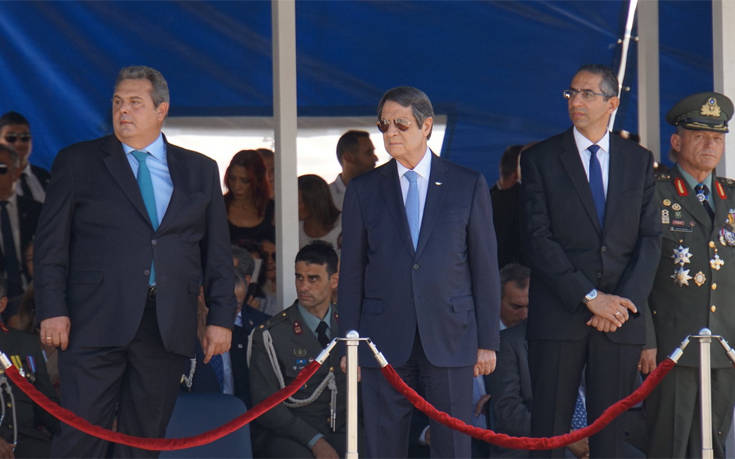 Στη στρατιωτική παρέλαση για την 58η επέτειο από την ανακήρυξη της Κυπριακής Δημοκρατίας έδωσε το «παρών» ο Έλληνας υπουργός Άμυνας, Πάνος Καμμένος. Κατά την έναρξη της παρέλασης, δύο ελληνικά F16 διέσχισαν τον ουρανό της Λευκωσίας, ενώ ο ίδιος σημείωσε στο μήνυμά του: «Οι εορτασμοί θα είναι πλήρεις όταν η Κύπρος θα ελευθερωθεί και θα είναι όλη ενωμένη, μέχρι τον Απόστολο Ανδρέα». «Η Ελλάδα είναι εδώ, δίπλα στην Κύπρο», διαβεβαίωσε o κ. Καμμένος και πρόσθεσε ότι «η Ελλάδα δεν θα είναι ποτέ πια μακριά». Όπως ανέφερε, χάρη στις σκληρές θυσίες του κυπριακού και του ελληνικού λαού, Ελλάδα και Κύπρος δεν είναι πια χώρες κρίσης, αλλά χώρες σταθερότητας στην ευρύτερη περιοχή της Μεσογείου. Σύμφωνα με την ανταπόκριση του Αθηναϊκού – Μακεδονικού Πρακτορείου Ειδήσεων, συμπλήρωσε επίσης ότι οι αρμόδιοι των δύο χωρών έχουν οδηγήσει σε διμερείς και τριμερείς συμφωνίες, που αναδεικνύουν την Ελλάδα και την Κύπρο σε πόλους σταθερότητας στην περιοχή. Με κέντρο τις δύο χώρες, «ξετυλίγεται πλέον το νέο ενεργειακό κέντρο της Μεσογείου» σημείωσε ο Έλληνας υπουργός. Ο κ. Καμμένος τόνισε ότι οι δύο χώρες θα συνεχίσουν να αγωνίζονται μέχρι την τελική ελευθερία της Κύπρου, προσθέτοντας ότι ο κυπριακός ελληνισμός «θα πρέπει να αισθάνεται και ασφαλής, με ένα μόνο προαπαιτούμενο, την ενότητα και την ομοψυχία όλου του λαού».