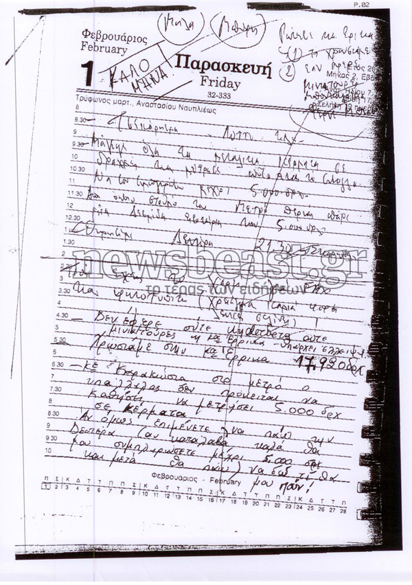 Συναλλαγές μεγάλων χρηματικών ποσών και τα ψώνια του μπακάλη (!) συνυπάρχουν σε πολλές σελίδες του ημερολογίου του Παντελεήμονα Καρακώστα που βρίσκεται στα χέρια των βουλευτών της εξεταστικής επιτροπής για τη Siemens.