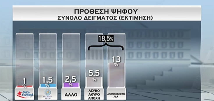 Κανένα άλλο κόμμα δεν περνά το όριο του 3% για είσοδο στο κοινοβούλιο. Ποτάμι, Ένωση Κεντρώων και Ανεξάρτητοι Έλληνες ισοδυναμούν στο 1,5%.
