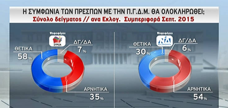 Αισθητή είναι η απογοήτευση και στους κόλπους των ψηφοφόρων του ΣΥΡΙΖΑ, όπου οι αρνητικές γνώμες για τις κυβερνητικές επιδόσεις των δύο εταίρων υπερέχουν των θετικών κατά δύο μονάδες (47% έναντι 45%).
