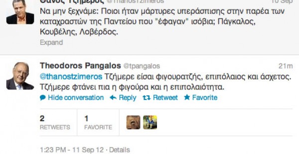 Ο Θ.Πάγκαλος είδε σήμερα το σχόλιο και απάντησε σε έντονο ύφος: «Τζήμερε, είσε φιγουραστής επιπόλαιος και άσχετος, Τζήμερε, φτάνει πια η φιγούρα και η επιπολαιότητα».
