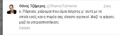 Και φυσικά ο πρώην αντιπρόεδρος της κυβέρνησης δεν σταμάτησε εκεί. Ιδού και η συνέχεια της επίθεσης Παγκάλου και η απάντηση του Θ.Τζήμερου.