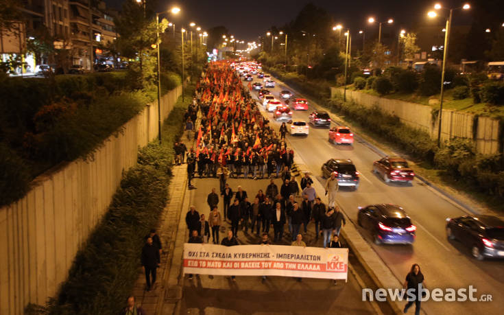 Πορεία προς την αμερικανική πρεσβεία πραγματοποιεί αυτή την ώρα το ΚΚΕ ενάντια «στα σχέδια της κυβέρνησης για επέκταση και δημιουργία νέων αμερικανοΝΑΤΟικών βάσεων». Προηγήθηκε συγκέντρωση στο υπουργείο Άμυνας, όπου απηύθυνε ομιλία ο γενικός της ΚΕ του ΚΚΕ Δημήτρης Κουτσούμπας.