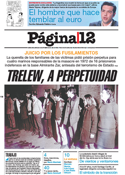 Αποκλειστική συνέντευξη του προέδρου της ΚΟ του ΣΥΡΙΖΑ Αλέξη Τσίπρα, δημοσιεύει η εφημερίδα Pagina12 της Αργεντινής, με τίτλο «Ο άνθρωπος που κάνει το ευρώ να τρέμει».