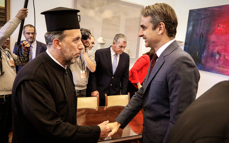 Με το προεδρείο του Ιερού Συνδέσμου Κληρικών Ελλάδος συναντήθηκε ο πρόεδρος της Νέας Δημοκρατίας, Κυριάκος Μητσοτάκης. Σύμφωνα με ενημερωτικό σημείωμα της Πειραιώς, τους έδωσε την απόλυτη διαβεβαίωση ότι η Νέα Δημοκρατία «δεν πρόκειται να αποδεχθεί την εργαλειοποίηση των χιλιάδων κληρικών από τον κ. Τσίπρα και την αλλαγή του τρόπου μισθοδοσίας τους, προκειμένου ο ΣΥΡΙΖΑ να προσλάβει 10.000 επιπλέον κομματικούς του φίλους».