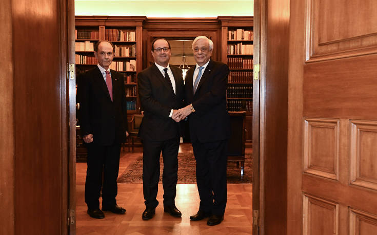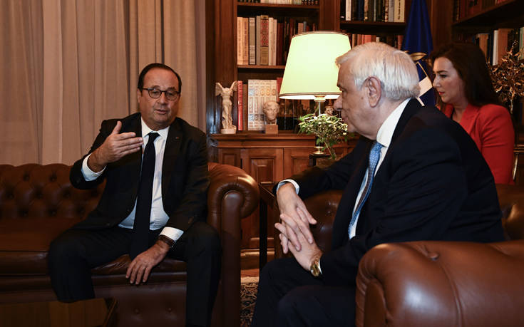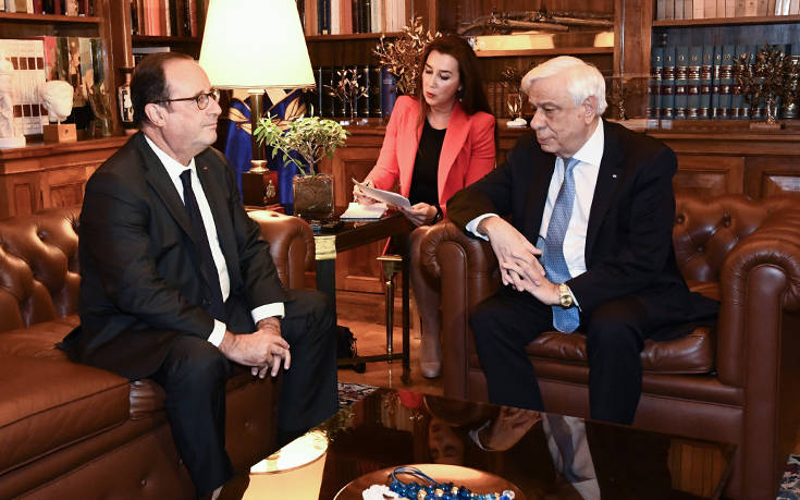Από την πλευρά του, ο Πρόεδρος της Ελληνικής Δημοκρατίας Προκόπης Παυλόπουλος τόνισε ότι «O Φρανσουά Ολάντ ήταν, είναι και θα παραμείνει ένας μεγάλος Φίλος της Ελλάδας αλλά και μια ηγετική πολιτική φυσιογνωμία στον Ευρωπαϊκό χώρο», ενώ υπογράμμισε και την πολύτιμη συμβολή του πρώην Υπουργού Οικονομικών της Γαλλίας κ. Μισέλ Σαπέν, ο οποίος συνόδευε τον κ. Ολάντ στο Προεδρικό Μέγαρο.