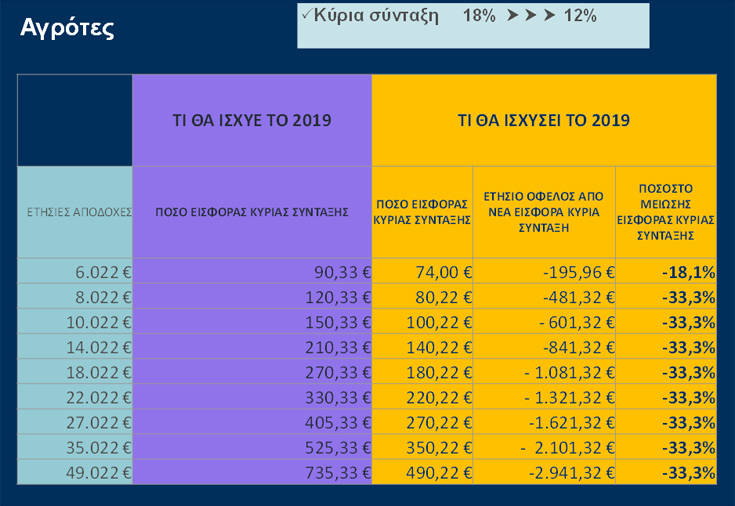 «Ένας αγρότης με εισόδημα 10.000 το χρόνο, θα πληρώσει 600 ευρώ λιγότερα από το προβλεπόμενο για το έτος, δηλαδή μείωση 33% στην εισφορά κύριας σύνταξης.