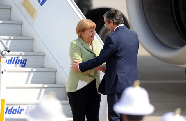 Ο πρωθυπουργός Αντώνης Σαμαράς υποδέχτηκε την Γερμανίδα Καγκελάριο το μεσημέρι στο Ελ. Βενιζέλος.