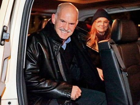 Όπως φαίνεται από τις φωτογραφίες που δημοσιεύει σήμερα η Bild ο κ. Παπανδρέου βγήκε… χαμογελαστός από το εστιατόριο του Βερολίνου, συντροφιά με τη σύζυγό του, Άντα, πήρε ένα ταξί, χαμογέλασε και στον φωτογράφο και έφυγε.