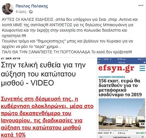 Στα ΜΜΕ επιτίθεται ο αναπληρωτής υπ. Υγείας Παύλος Πολάκης μέσω Facebook κατηγορώντας τα ότι αφιερώνουν «δεκάλεπττα και οχτάστηλα για ειδήσεις όπως η έκρηξη στο Κολωνάκι και η νέα άδεια του Δημήτρη Κουφοντίνα» και δεν ασχολούνται με «καλές ειδήσεις όπως η πρόθεση της κυβέρνησης να αυξήσει τον κατώτατο μισθό ή η διανομή του κοινωνικού μερίσματος» όπως λέει χαρακτηριστικά.