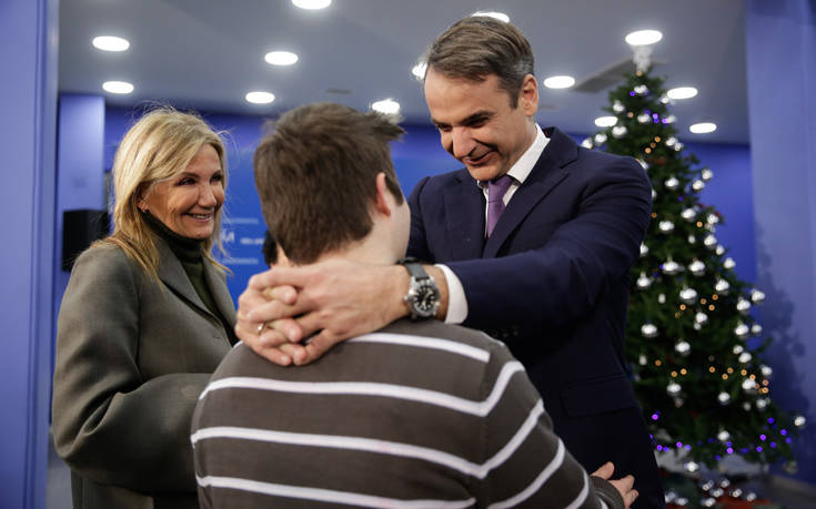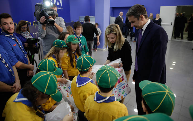 Στον κ. Μητσοτάκη είπαν επίσης τα πρωτοχρονιάτικα κάλαντα και παιδιά του Συλλόγου Συνδρόμου Down. Ο πρόεδρος της ΝΔ συνομίλησε με εκείνα και τις μητέρες τους που τα συνοδεύουν, ενώ τους μοίρασε αναμνηστικά δώρα.